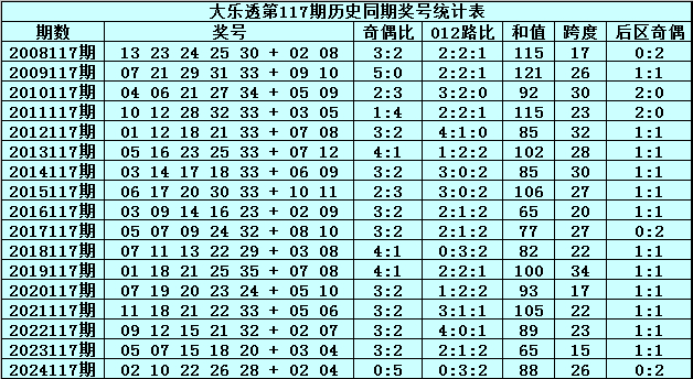 水镜体彩大乐透第2025117期历史同期奖号分析: