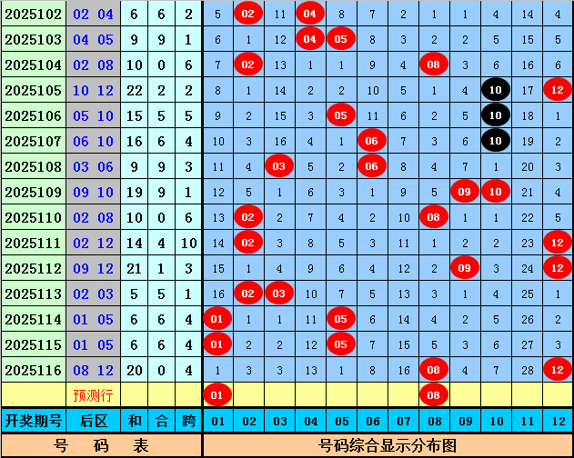 后区分析:在第117期历史同期开奖中,后区奖号全奇出现2次,全偶出现3次,一奇一偶出现12次,今年第117期后区预计出现一奇一偶组合,看好两码01和08。
